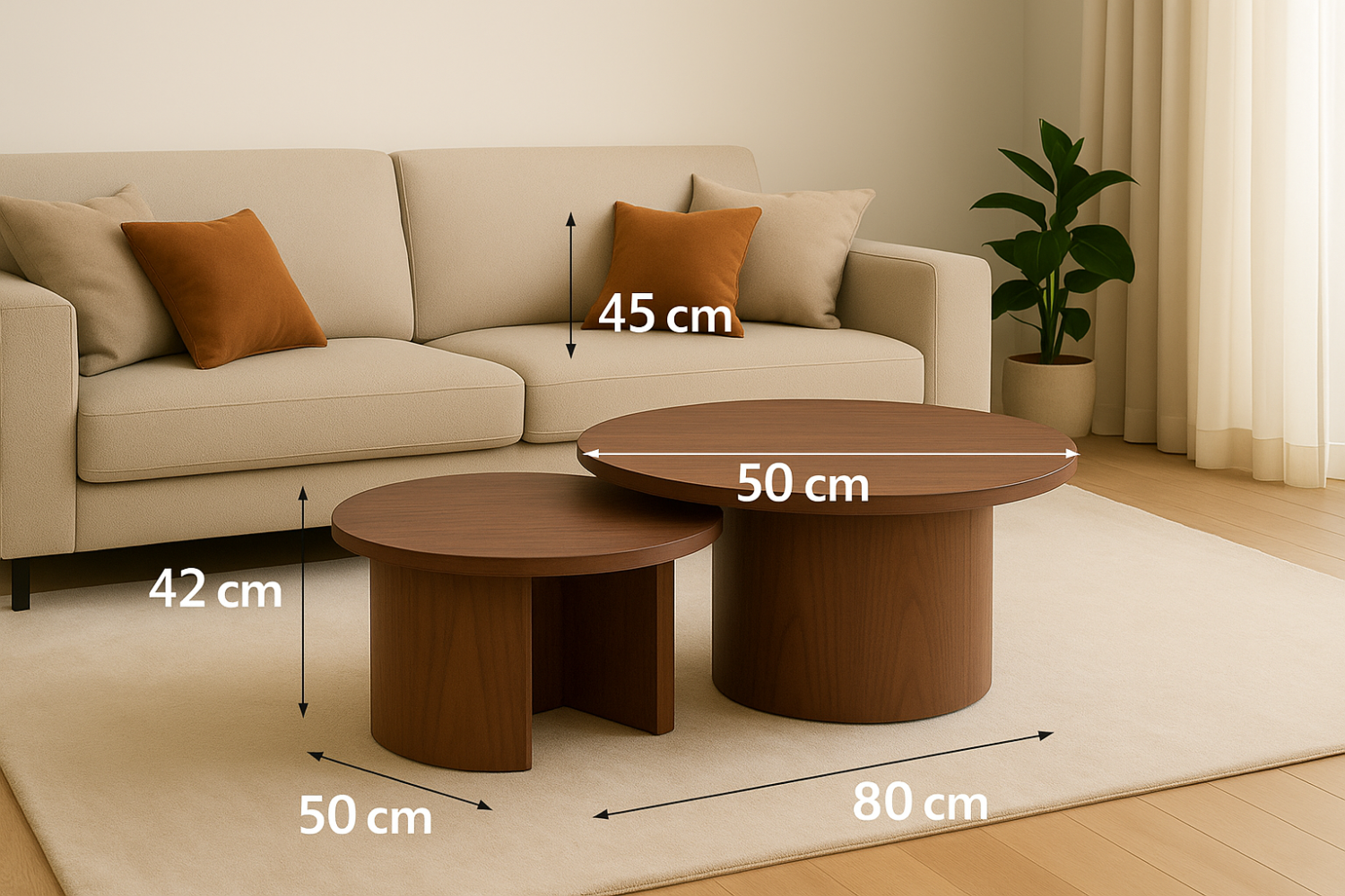 Small side table: 50 cm × 40 cm × Height 42 cm