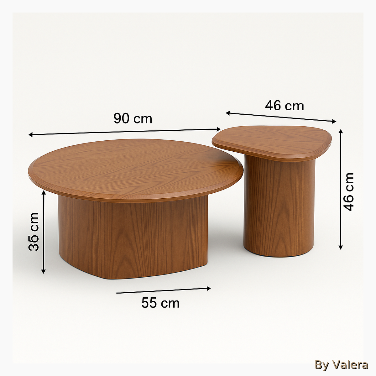 طاولة قهوة خشبية مودرن بيضاوية مزدوجة المستويات - تصميم فاخر من فاليرا