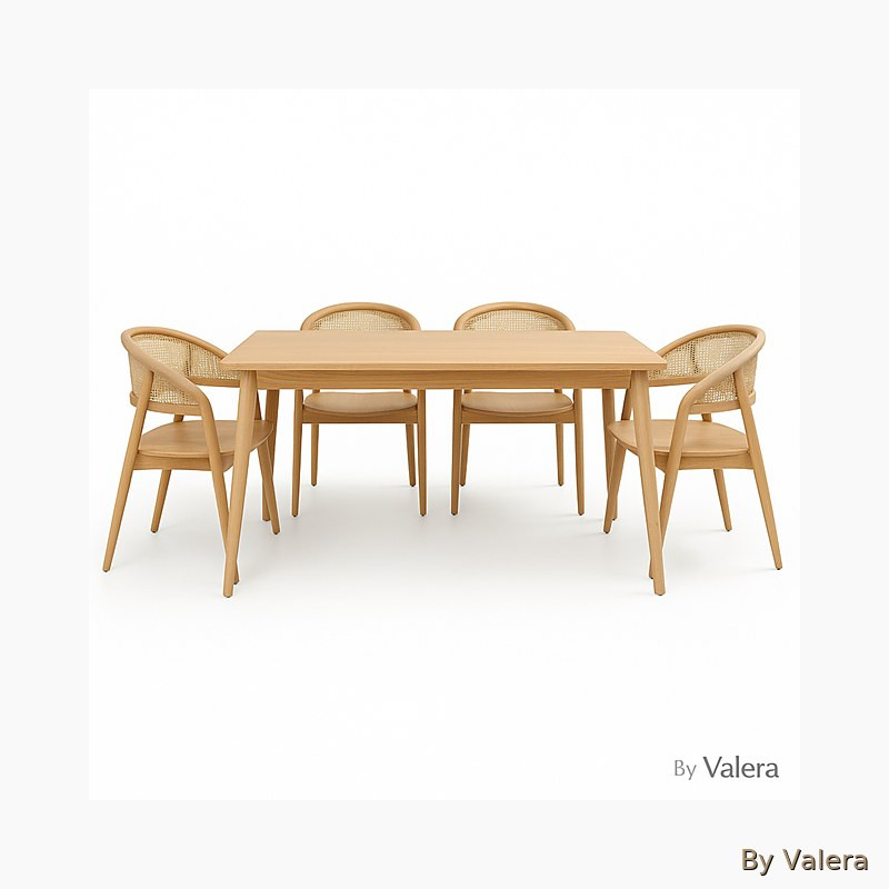 طقم سفرة مودرن خشب وخوص (4 كراسي + طاولة) | Modern Cane Dining Set (Table + 4 Chairs)