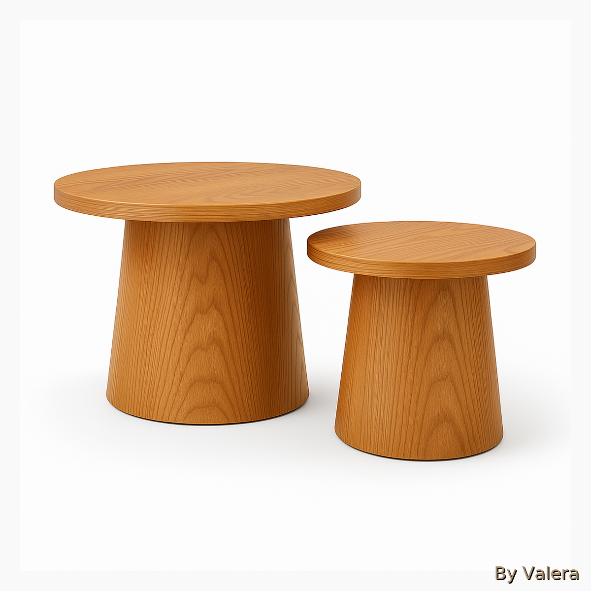 Modern Conical Wooden Side Tables Set