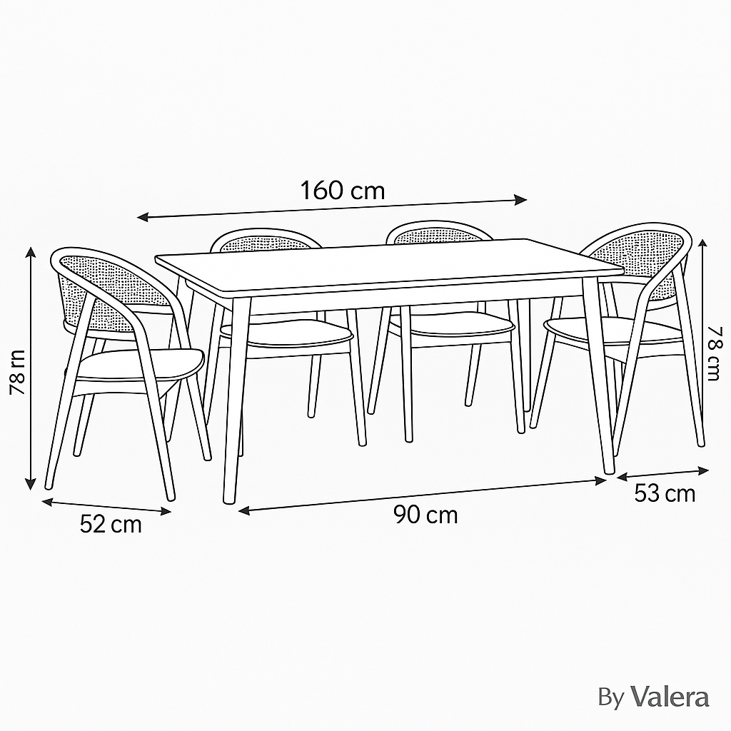 طقم سفرة مودرن خشب وخوص (4 كراسي + طاولة) | Modern Cane Dining Set (Table + 4 Chairs)